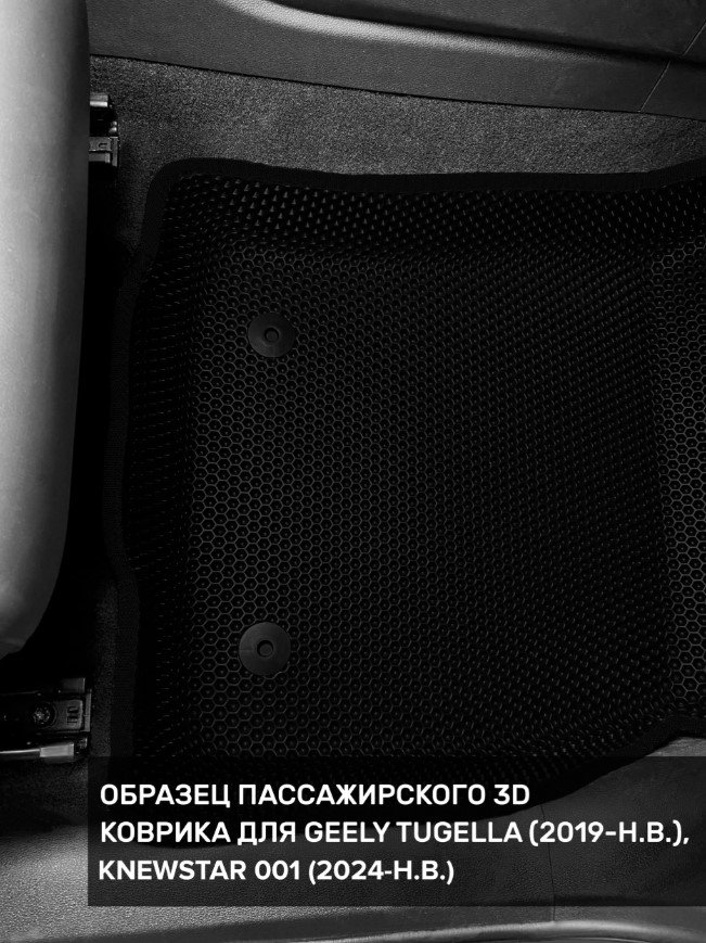 Автомобильные 3д коврики для Knewstar 001 (2024-н.в.) в салон авто и багажник сделаны из инновационного полимерного материала EVA, изысканная структура в виде ячеек не дает воде, пыли и снегу разлетаться по салону машины и багажнику. 3д коврики зафиксированы на полу определенными клипсами, соответствующими Knewstar 001 (2024-н.в.), и не двигаются в процессе езды.